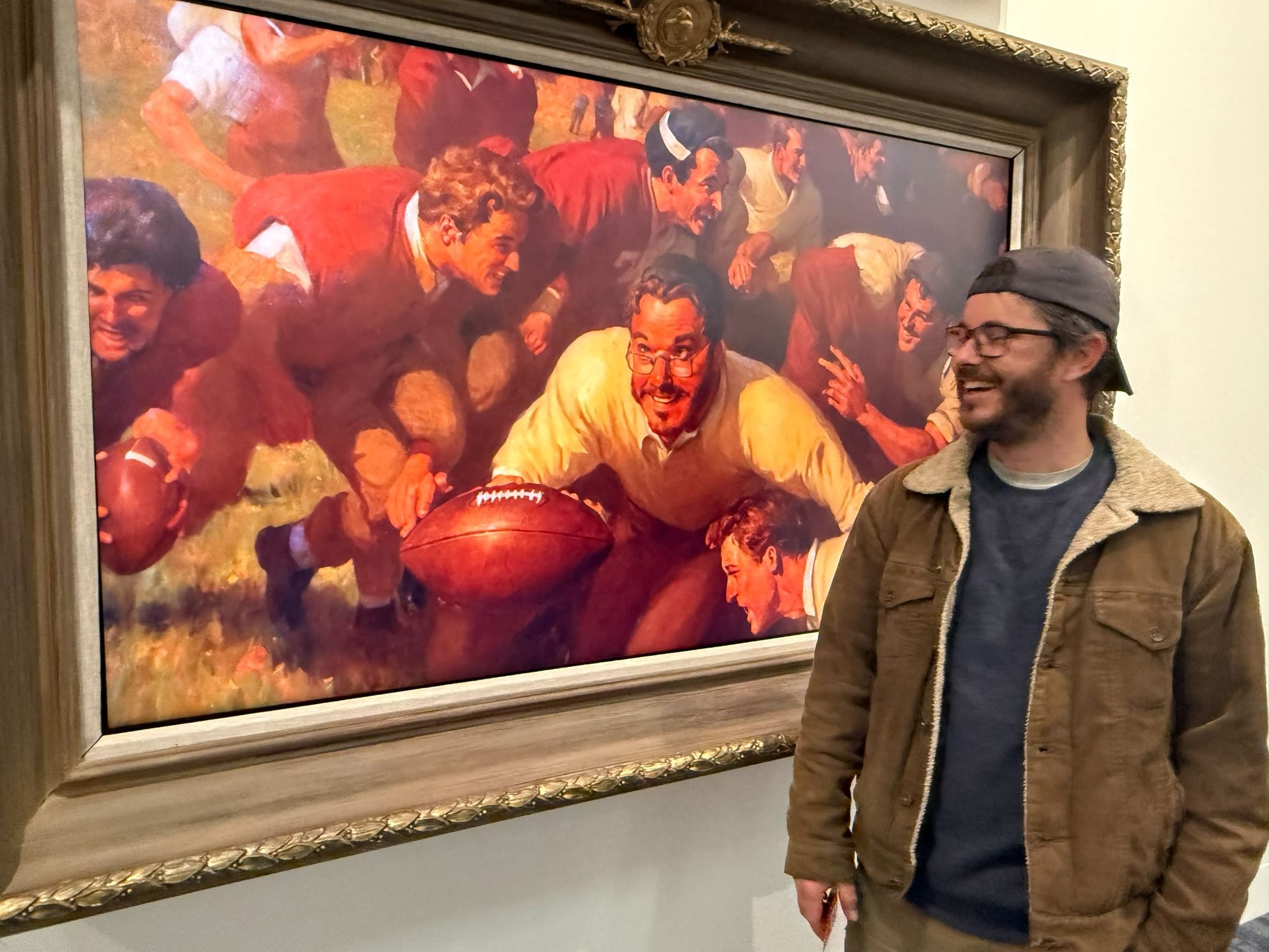 The second floor shifts the experience in noticeable ways. This level hums with activity, blending history and culture and participation. Exhibits explore tailgating traditions, social rituals, music, uniforms, and artifacts that reflect how college football has been experienced across generations. Alex drifted easily between hands-on activities and visual displays, while Joe and I found ourselves circling back to moments that sparked conversation.