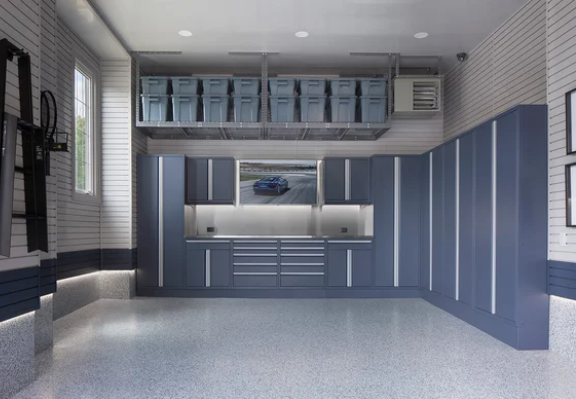 Garage Living specializes in integrated solutions, meaning cabinetry, wall systems, and flooring are designed to work together rather than compete for space. Their cabinets are typically floor mounted and always professionally installed, which matters for long term stability and safety. Materials are selected specifically for garage environments, not repurposed from indoor use, which helps prevent sagging, peeling, or premature failure.