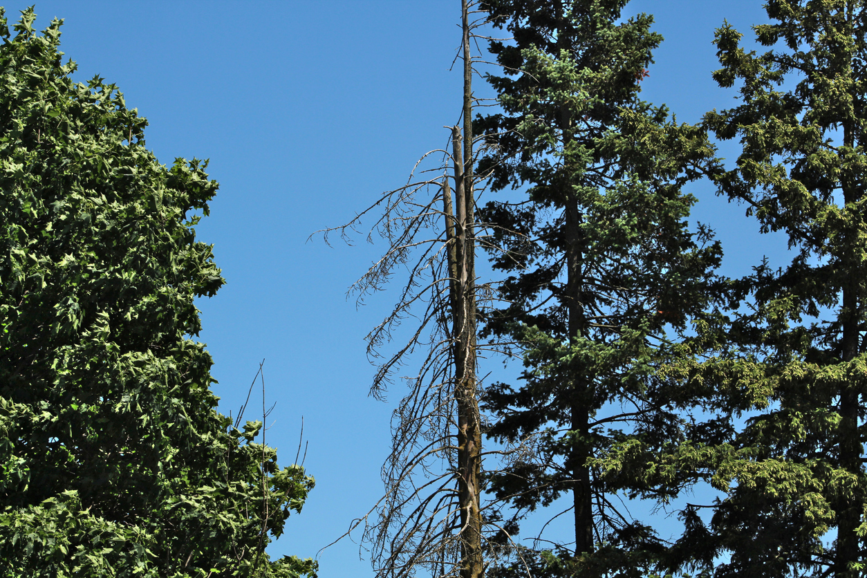 A full, leafy canopy is a hallmark of a healthy tree. If your tree has bare branches during the growing season or its canopy looks thin and patchy, it’s likely in decline. Dead branches not only indicate poor health, they are also hazards in their own right.